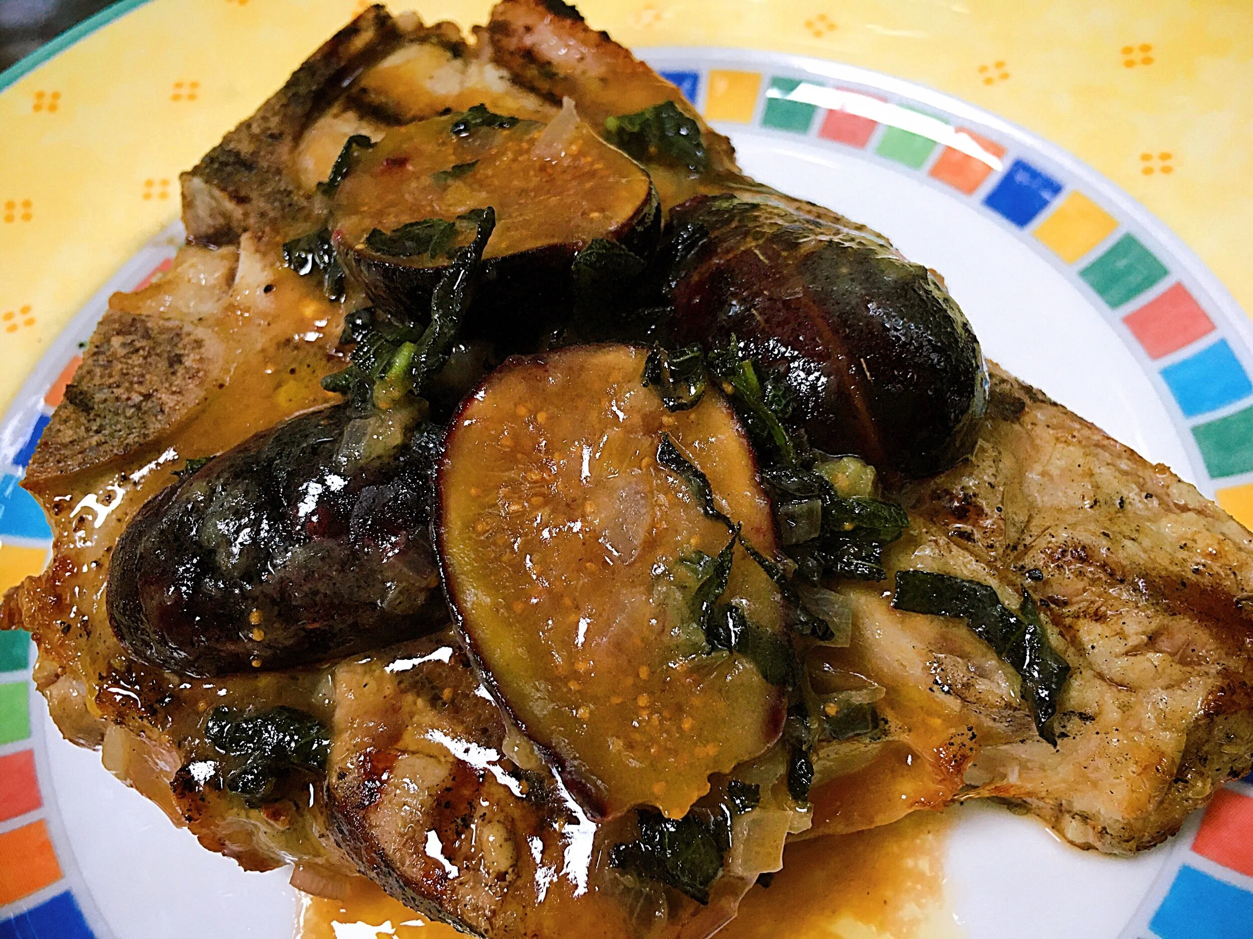 The other night, we took some loin veal chops out of the freezer and while Hank cooked them on the grill, I decided to make a sauce with the figs I had just bought to serve with the chops. Although on that occasion we served it with veal, I’m guessing it would also be delicious with chicken, duck, lamb, or pork.