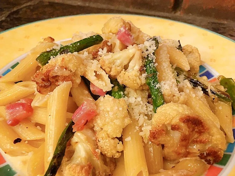 This recipe was a favorite of my son, Wilson, when he was growing up. My kids love roasted cauliflower and we had that as our vegetable all the time, so the most common iteration of this dish has been with leftover roasted cauliflower, but it can be made with so many different vegetables.